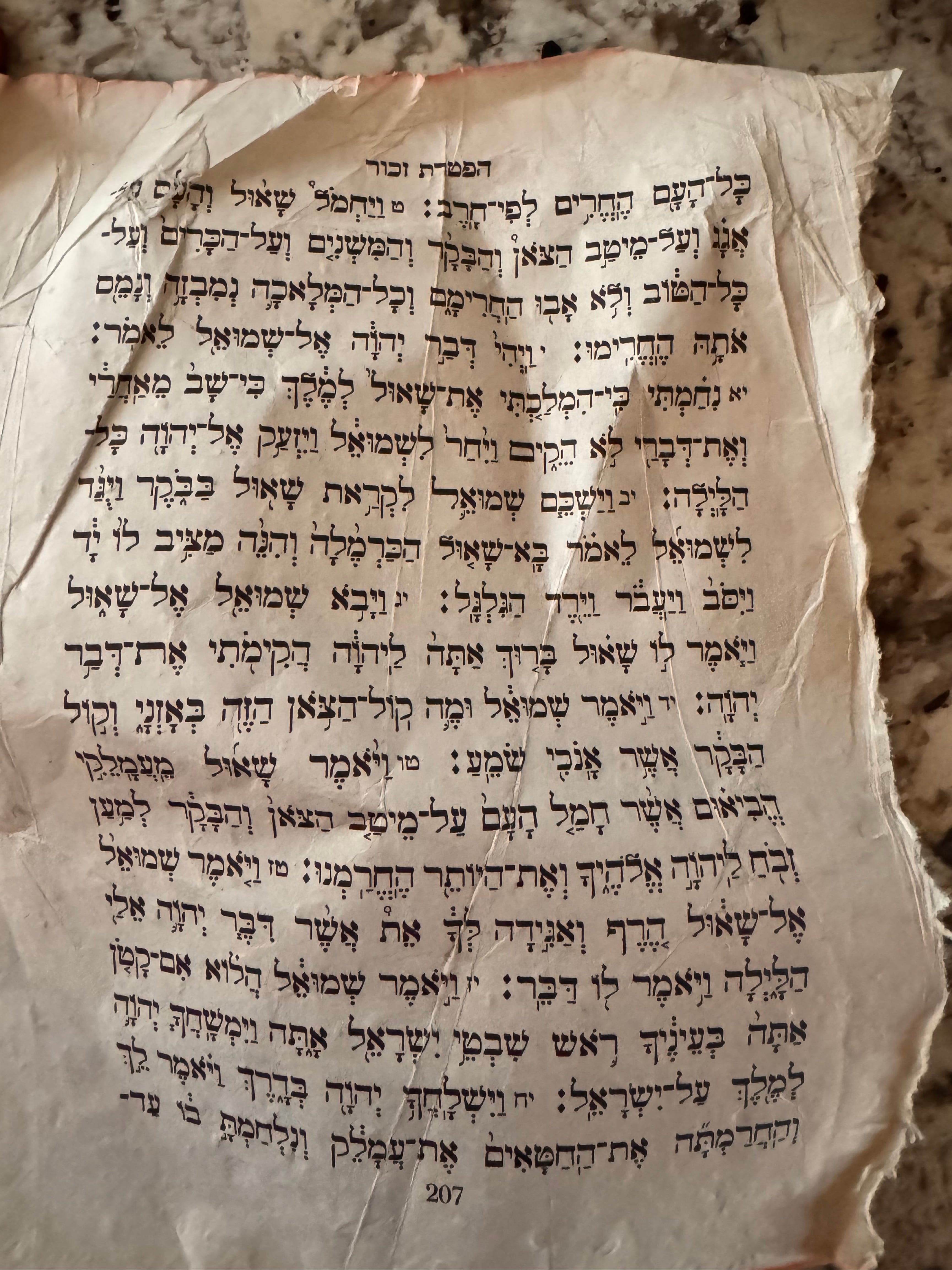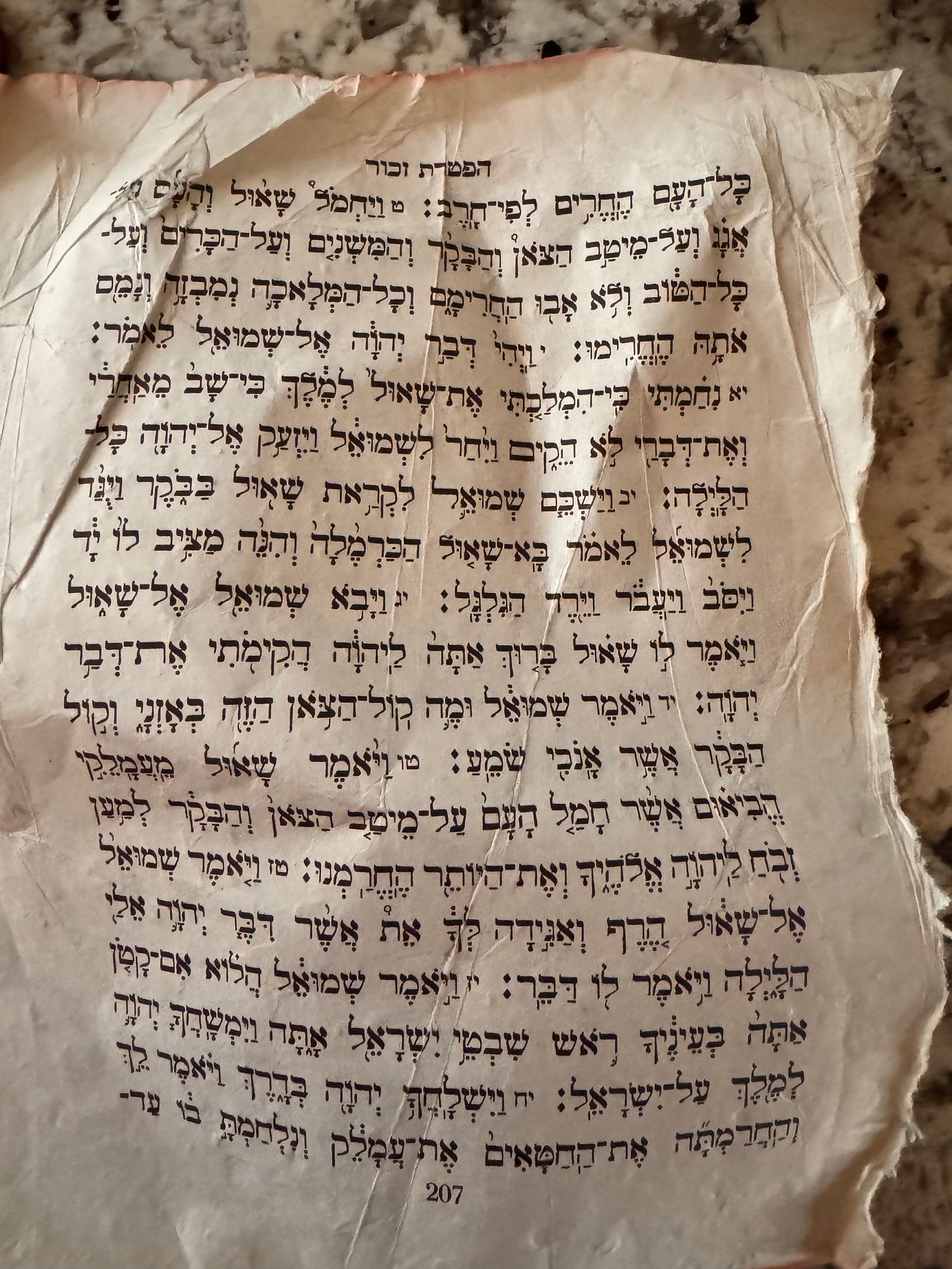 At home, I flatten the page upon the kitchen counter and read its heading, “Haftarat Zakhor,” a directive to remember. Scholars place this passage within I Samuel 15, where a prophet demands King Saul eradicate Amalek without mercy. The text recounts how Saul spares King Agag and choice livestock, claiming sacrifice plans as justification. Samuel responds with surgical language, declaring, “To obey holds greater value than sacrifice and to heed surpasses the fat of rams.” The narrative paints obedience as action completed, not gesture proposed. Saul’s partial compliance exposes a fracture between intent and integrity. The parchment radiates that tension across my custom granite countertop. And weren’t these a luxury at one point and not a must-have or you’re trash?